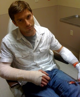 It turns out SUV's and Vespa's are not a good pair, especially while entering into a busy intersection. Jamey has successfully broken this arm three, count em, three times. A week later he went into surgery and had a plate and 8 screws placed in the radius. In Jamey's right arm we are at a total of 10 screws. Good Job!